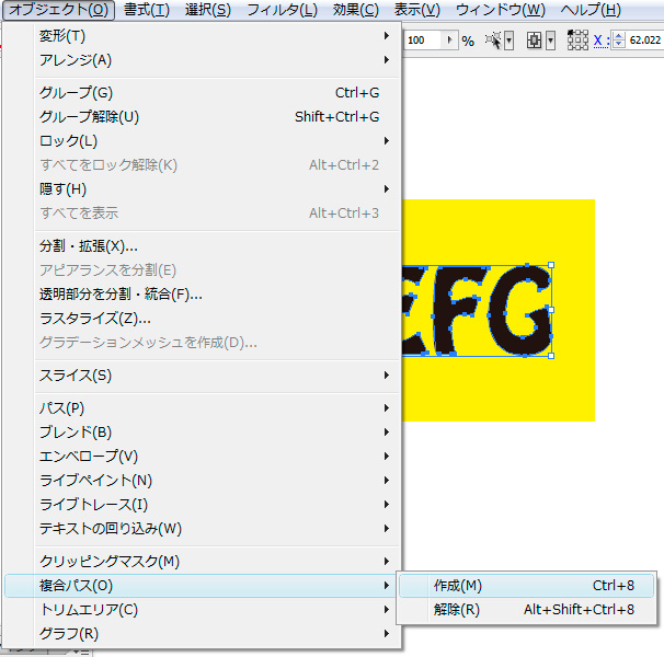 複合パス完成。背景のオブジェクトと一緒に選択して、クリッピングマスク